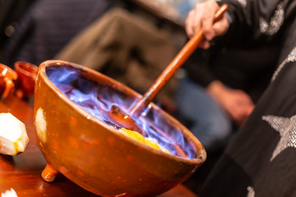 La queimada es mucho más que un brindis: es un ritual gallego que mezcla fuego, misterio y tradición. Preparada con aguardiente, azúcar y piel de cítricos, se enciende para ahuyentar los malos espíritus mientras se recita un conjuro. Su sabor dulce y potente es el broche perfecto para cualquier comida, un guiño a la magia y la cultura de Galicia